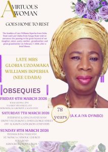 According to the schedule released by the family, a wake-keep will be held on Friday, March 6. This will be followed by the interment and lying-in-state on Saturday, March 7, while a Thanksgiving Mass is scheduled for Sunday, March 8, at St. Monica Catholic Church.