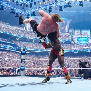 Nigerian professional wrestler Isaac Odugbesan, widely known as Oba Femi, delivered a shocking performance on the grand stage as he defeated Brock Lesnar in under five minutes during his WrestleMania debut on Sunday.